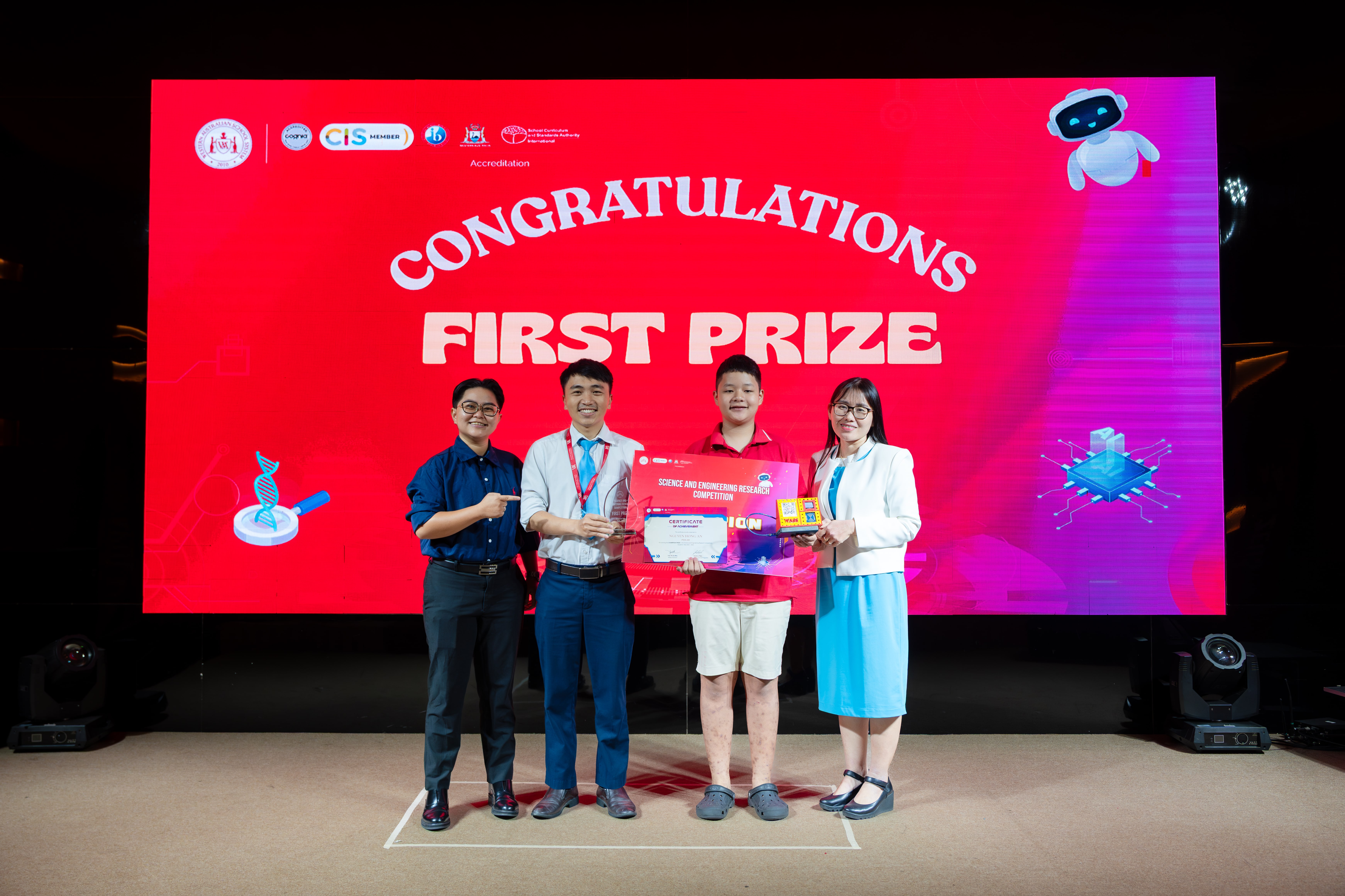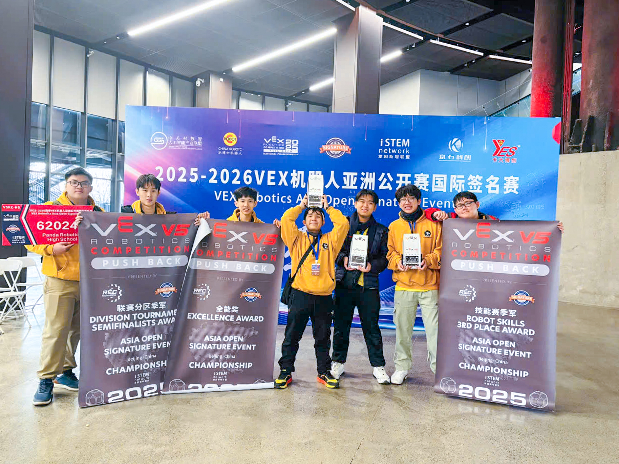Finally, most remarkably, the Panda Robotics Team, consisting of four WASSers – NGUYEN DINH MINH TUAN, NGUYEN HUY THUONG, LE MINH THIEN TRI, and WU MINH HAO – achieved historic milestones in their first-ever appearance at the highest continental-level competition, the VEX Robotics Competition Asia Open 2025, held from December 18 – 21, in Beijing (China).