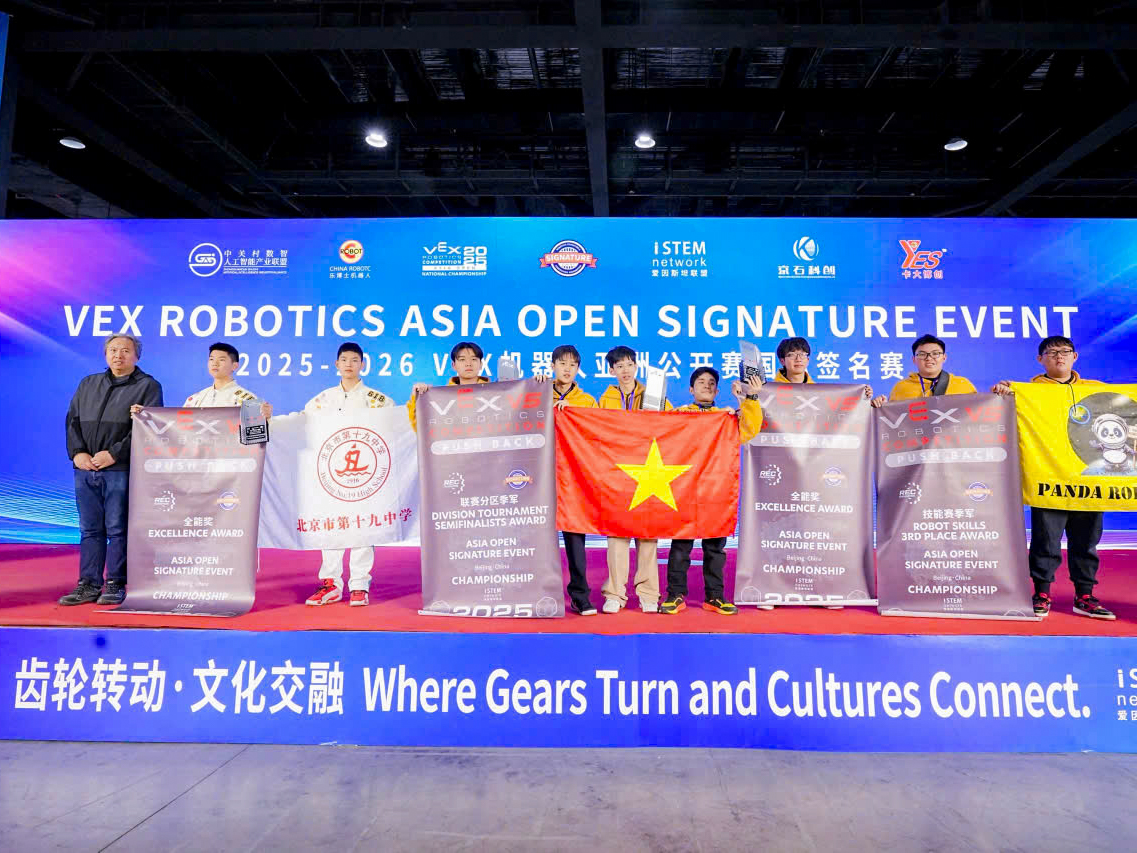 With the Excellence Award – honoring the most outstanding and well-rounded team of the competition – along with Third Place in the Robot Skills Challenge and Third Place in the Division Tournament Semifinals Award, these young “engineers” and their teammates made history for Vietnamese robotics. They proudly became the FIRST VIETNAMESE TEAM EVER to win the highest award at the VEX Robotics Asia competition and the FIRST VIETNAMESE TEAM to earn a place at the VEX Robotics World Championship in the United States, the largest robotics competition in the world.