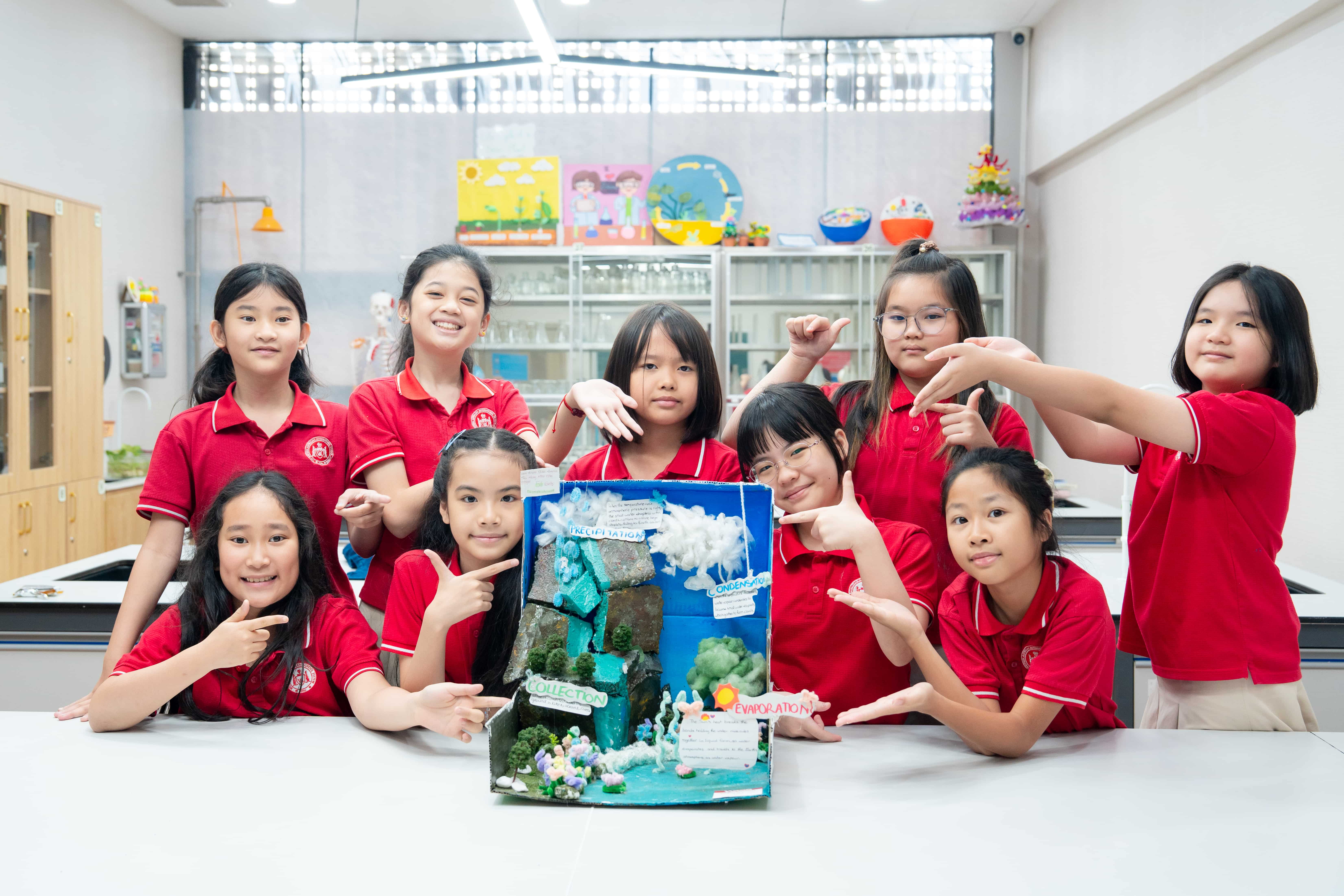Lớp PWA-5E: “Dự án của lớp em xoay quanh chủ đề Vòng tuần hoàn của nước – một quá trình quan trọng nhưng thường bị bỏ qua trong cuộc sống hằng ngày. Thông qua mô hình 3D, chúng em mong muốn giúp mọi người hiểu rõ hơn về hành trình và vai trò thiết yếu của nước đối với sự sống trên Trái đất.
