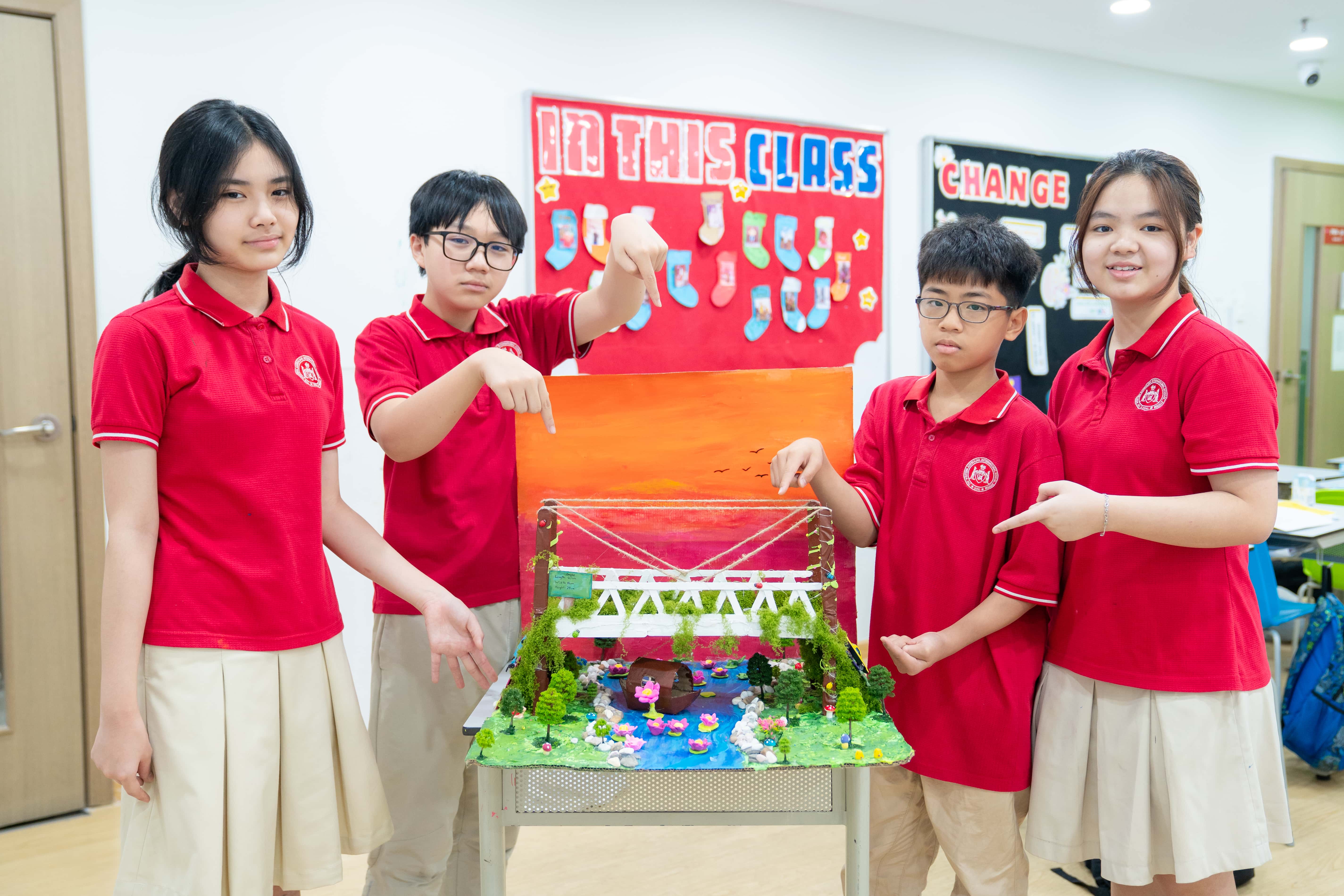 Lớp PWA-7D: “Dự án của lớp em tập trung vào ứng dụng hình học trong thiết kế mô hình cây cầu. Thông qua việc đo đạc và xây dựng theo bản vẽ, chúng em hiểu rõ hơn về cách kiến thức toán học được vận dụng trong thực tế. Chúng em mong rằng sau khi xem sản phẩm, ba mẹ sẽ thấy được ý nghĩa gần gũi và thiết thực của môn Toán trong đời sống.”