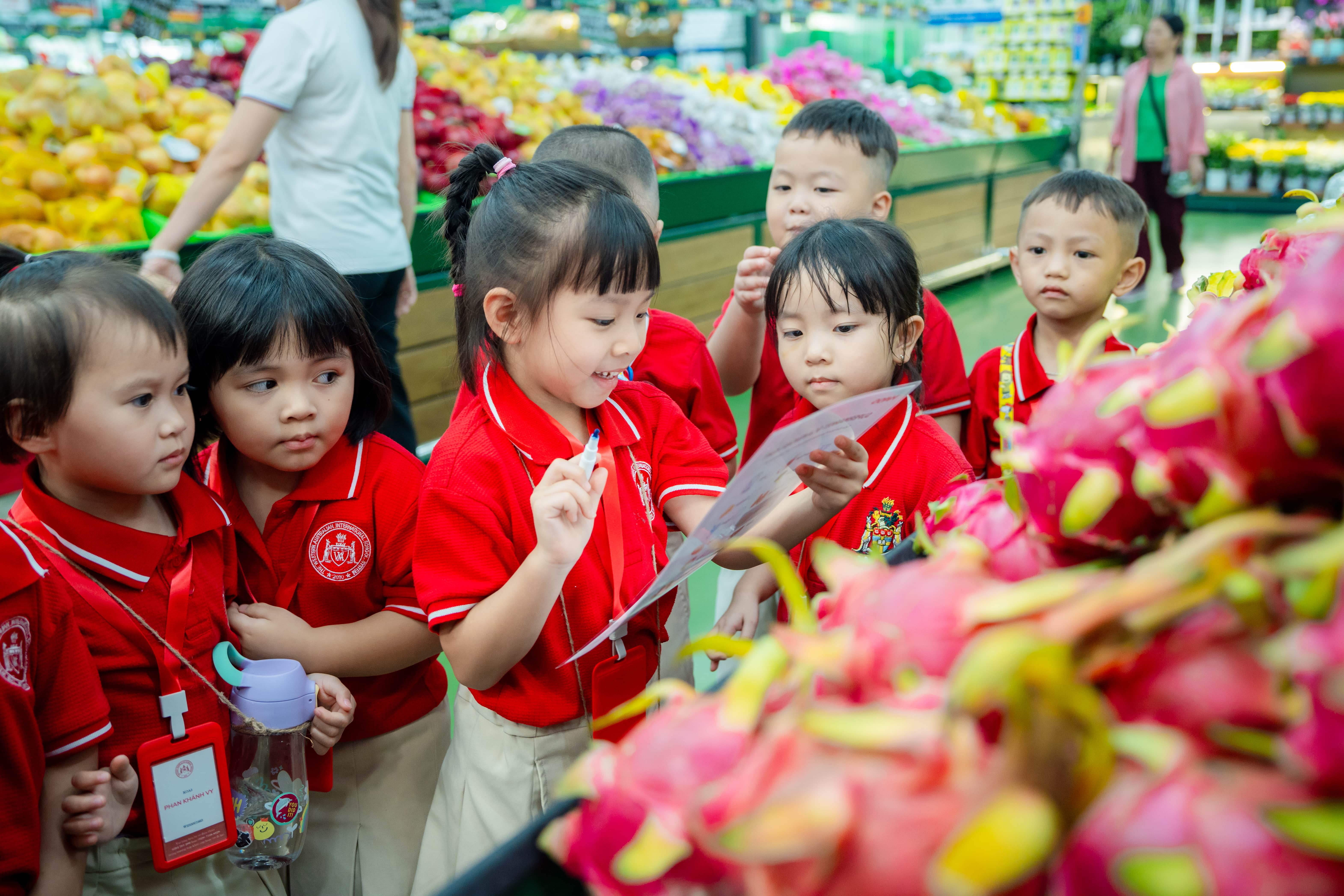 Giữa không gian đa sắc của các gian hàng thực phẩm, các WASSers nhí đã vô cùng hào hứng khi được tham quan siêu thị theo một cách rất khác biệt cùng thầy cô và bạn bè. Có bạn vui mừng nhận ra nhóm thực phẩm lành mạnh từng học trên lớp, có bạn tò mò đặt câu hỏi về những món ăn mới lạ, có bạn mạnh dạn trả lời các câu hỏi từ giáo viên. Từ đó, các em không chỉ học cách quan sát và ghi nhớ mà còn bắt đầu hiểu mình thích điều gì, muốn tìm hiểu điều gì và tự tin thể hiện suy nghĩ cá nhân.